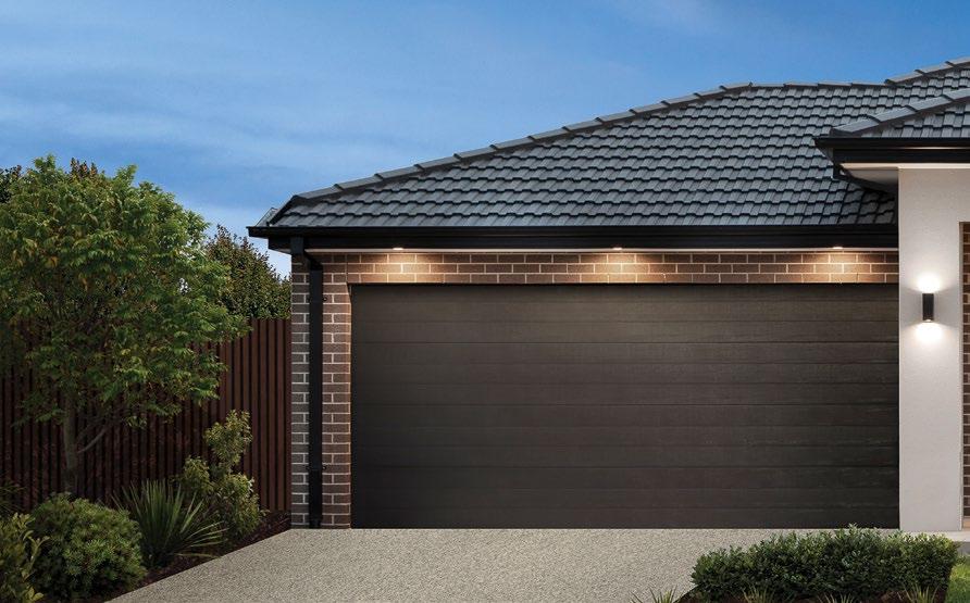 Maintenance free Colorbond sectional garage door, fascia, barges, gutter and downpipes with colour selected from Colorbond range. Gutters in slotted quad profile.