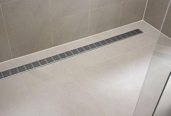 Tiled shower bases with channel grate to Ensuite or Bathroom to the ground floor of double storey homes and upper floor main ensuite.(As indicated on the standard plan).