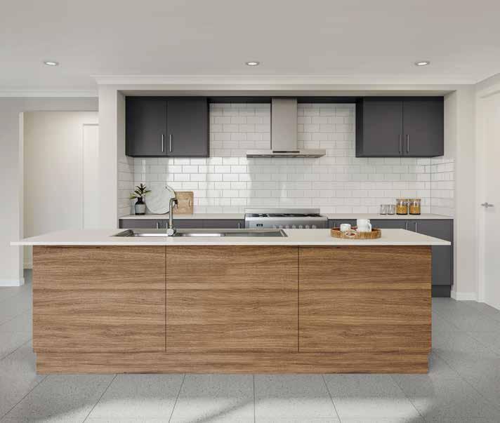 As standard, Inspirations Homes include 20mm Caesarstone to kitchen and laminate to bathrooms and laundry. Please speak with your Colour Consultant for colours available.