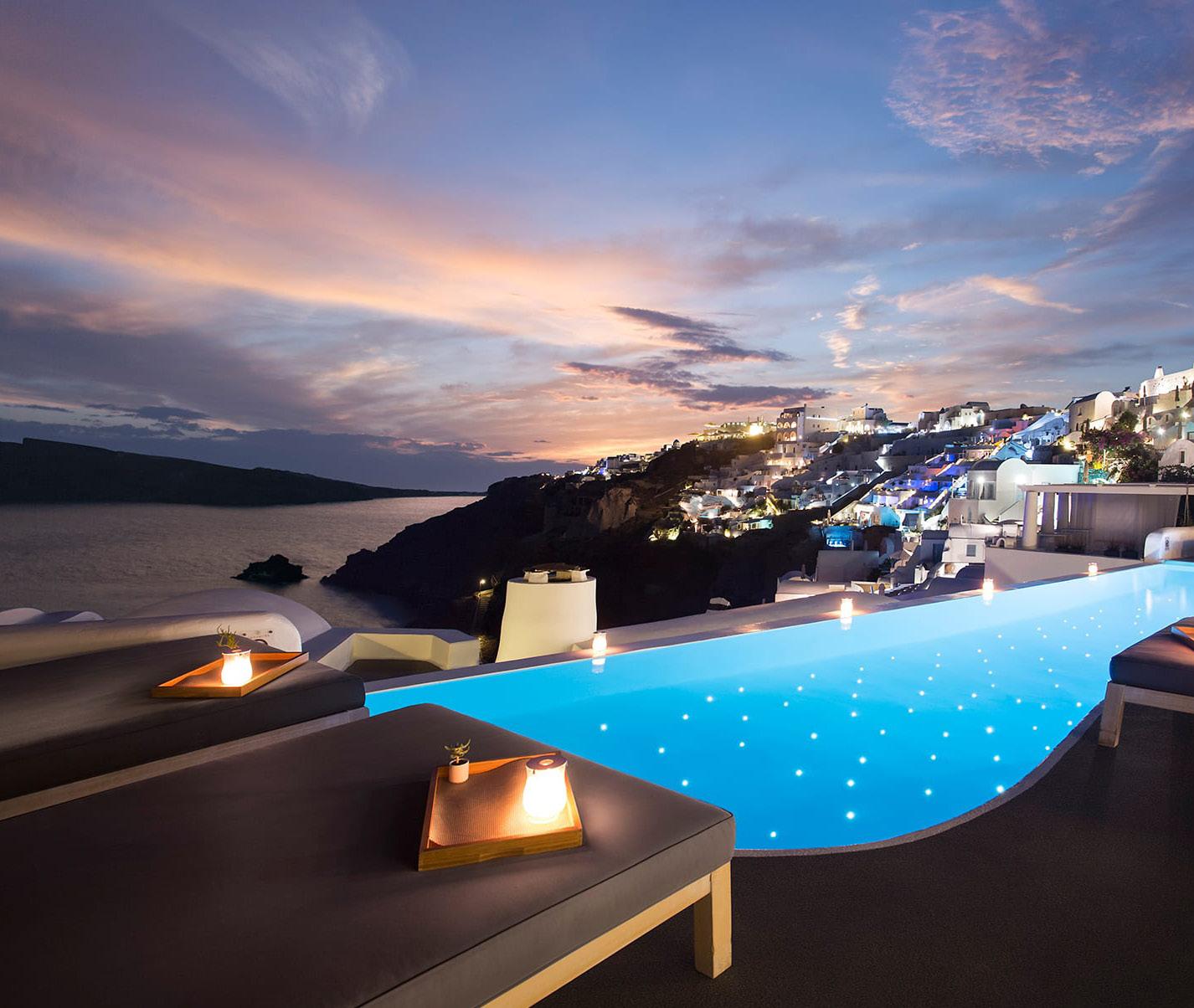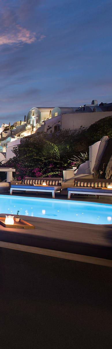 minimalist rooms have free WiFi, flat-screen TVs and iPod docks, along with minibars and Nespresso machines. Suites come with separate living areas; some are bi-level. Upgraded suites offer whirlpool tubs; some provide balconies with hot tubs and private pools. Butler and 24-hour room service is available. Overlooking the Aegean Sea, this luxury hotel is 11 km from both Mouseío Proïstorikís Thíras and the volcanic Santorini eruption.