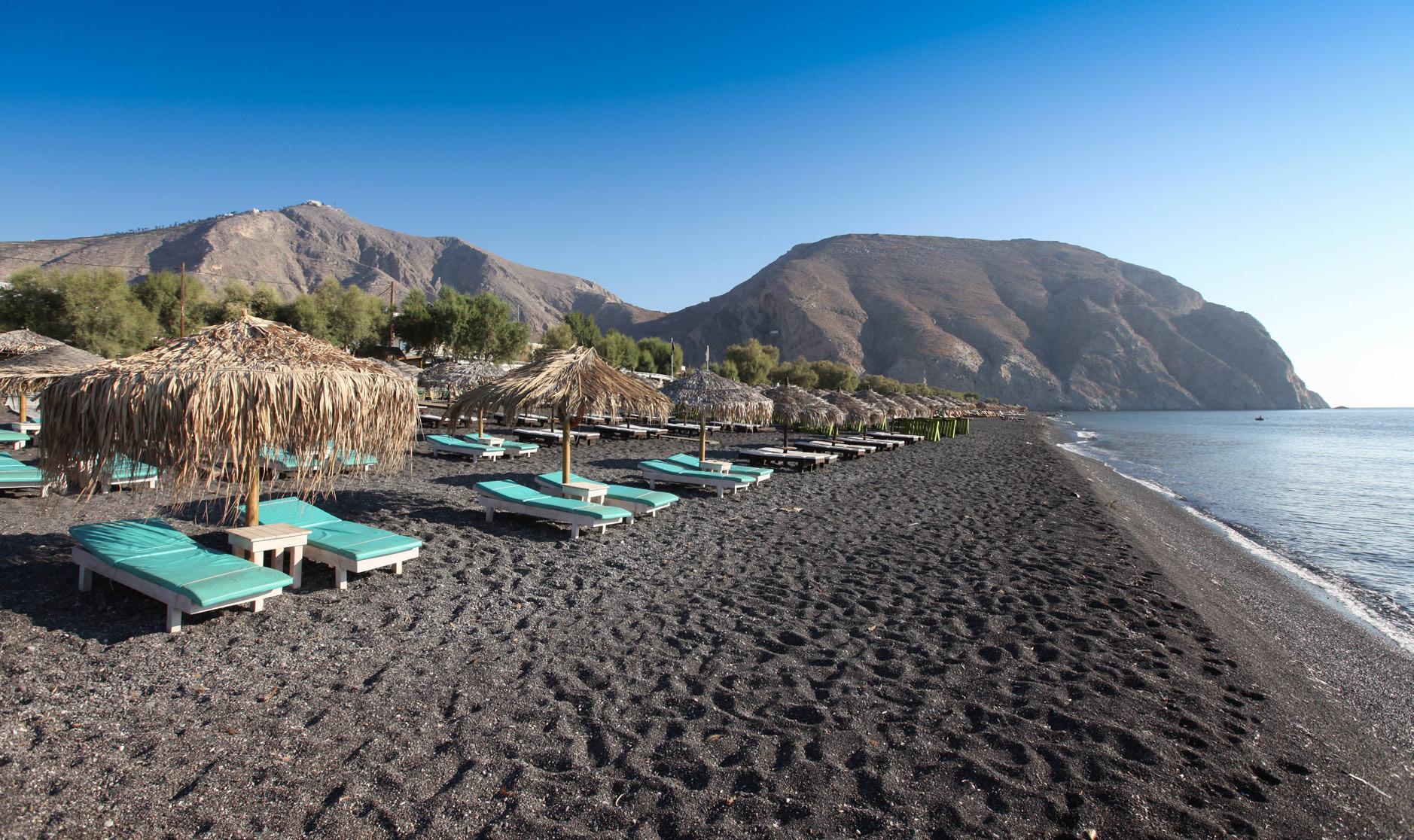 Kamari is one of Santorini’s most popular places to stay, and that’s largely down to its beautiful Blue Flag beach. A dark mix of sand and pebbles, it’s over five kilometres long. It caters for holidaymakers with a backdrop of ice-cream parlours, bars, and restaurants serving up fresh-from-the-net seafood.