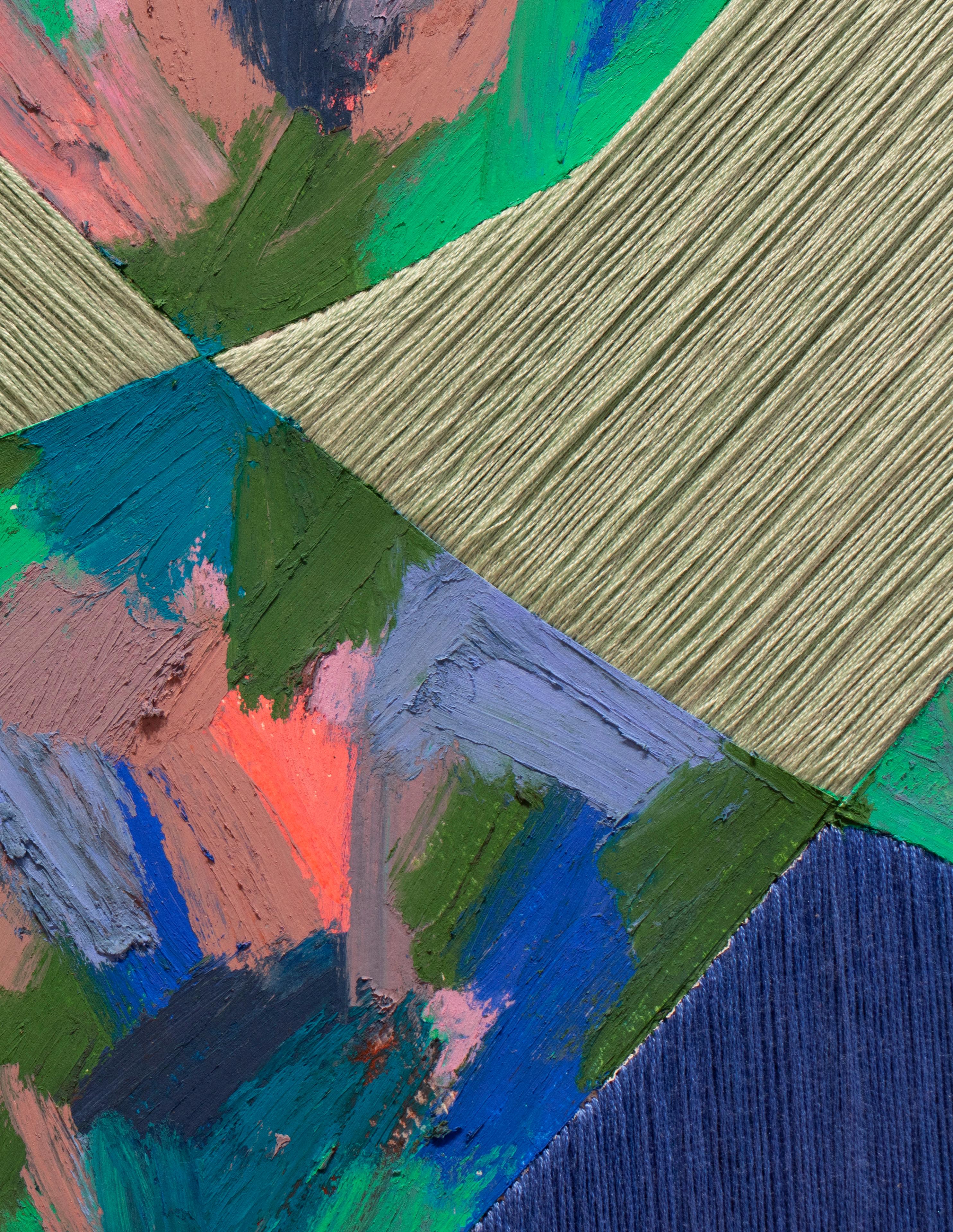 Amanda Valdez, Gratitude (Detail), 2021. Hand-woven fabric, gouache, acrylic, and canvas. 32 x 36 in/81 x 91 cm.