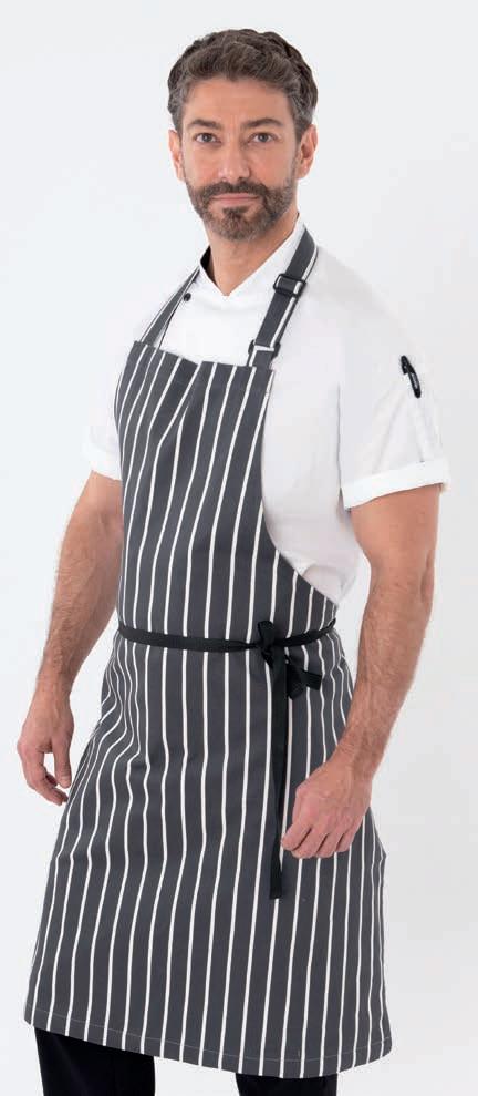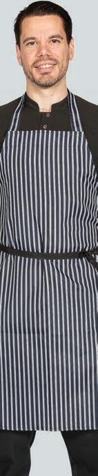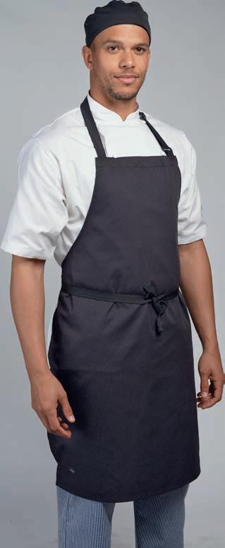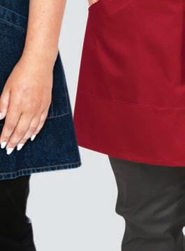 The bib apron is the ideal, low cost uniform option. It covers up staff clothing to give a consistent look. One size ts all, so it can be pool stock and available to all staff. It also gives you a large area for embroidery and badging.