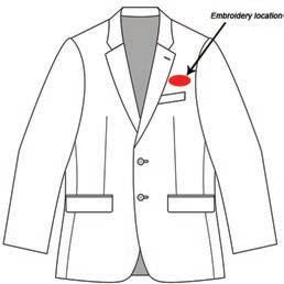 The diagrams below show the standard locations for embroidery. If you would like something different just ask us.