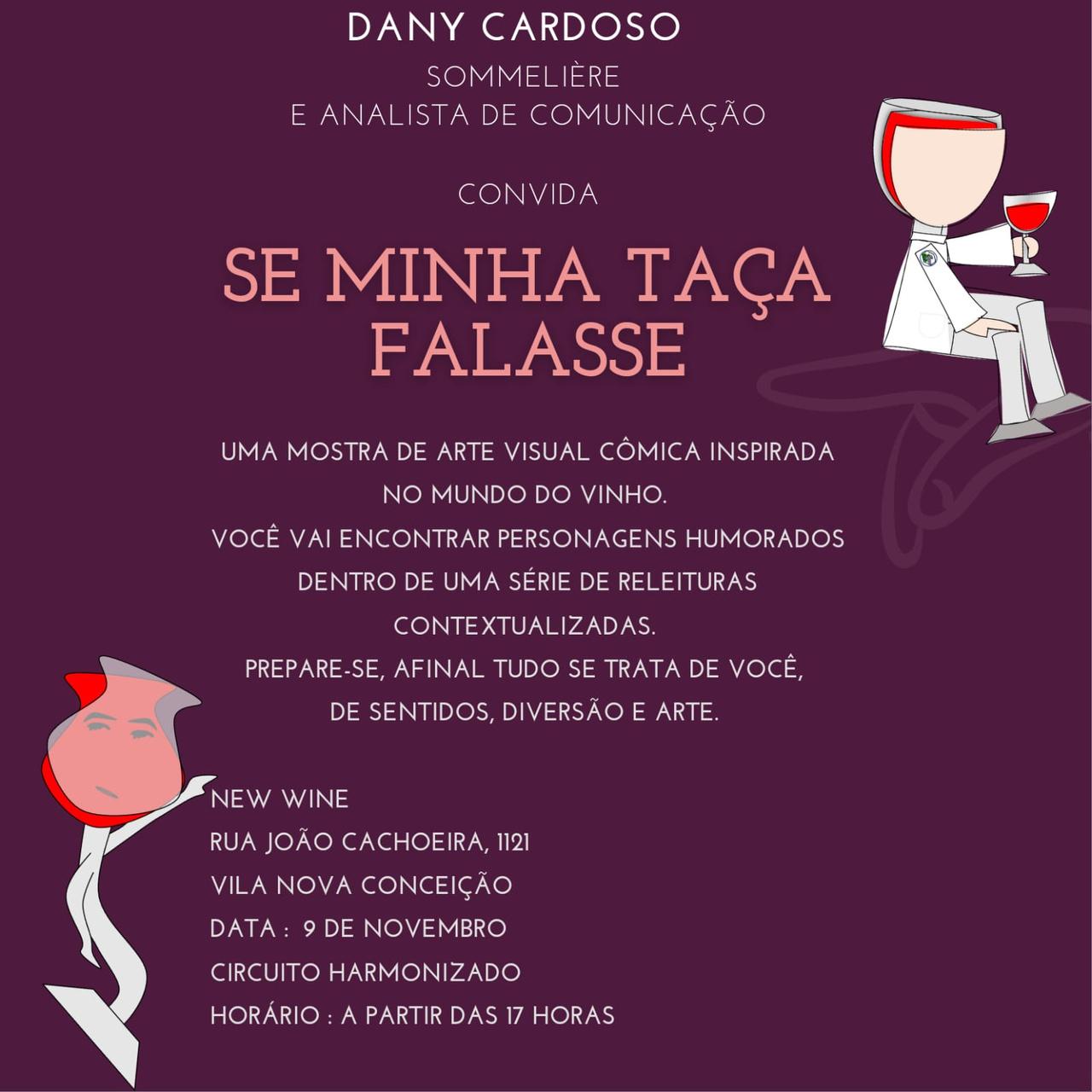 A partir do dia 7 de novembro vamos ter a oportunidade de conferir o divertido mundo das “tacinhas falantes e da festa dos sentidos”, criadas por Dany Cardoso, sommelière e analista de comunicação. Criou sem filtros ou protocolos sociais uma série de desenhos que renderá sorrisos e quem sabe reflexões. É isso aí, vai poder entrar num divertido mundo do vinho interpretado a partir de uma nova ótica