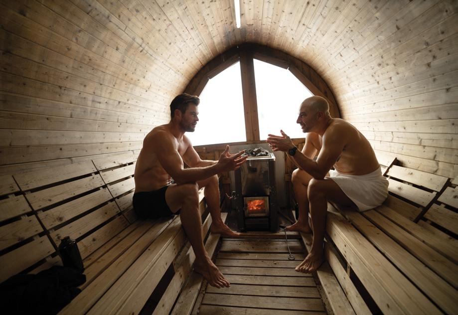 5. Chris Hemsworth and Peter Attia sit in a sauna.