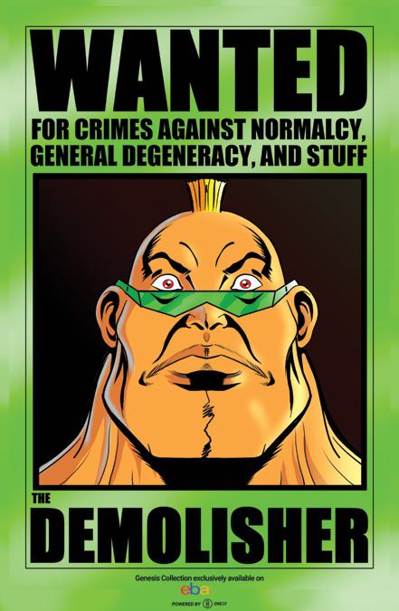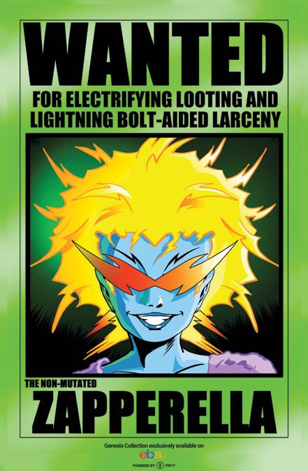 Each buyer will receive a corresponding physical poster signed by Will Meugniot and Shirrel Rhoades on-site free with NFT version purchase at the eBay booth. Grants future membership access to Scuzzle (Official Stan Lee Fan Club) 4 eBay exclusive NFTs each will be animated “Wanted Posters” (right) • Gold—Wanted: The Demolisher | $40 | 250 editions • Gold—Wanted: Downward Dave | $40 | 250 editions • Gold—Wanted: Zapperella | $40 | 250 editions • Gold—Wanted: Human Door | $40 | 250 editions Available from Thursday, Oct. 6 - Sunday Oct. 9 at the eBay booth (via QR code)