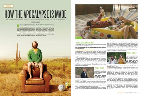 HOW THE APOCALYPSE IS MADE We went inside the writers’ room for Fox’s end-of-the-world sitcom, The Last Man on Earth. BY DANIEL KURLAND