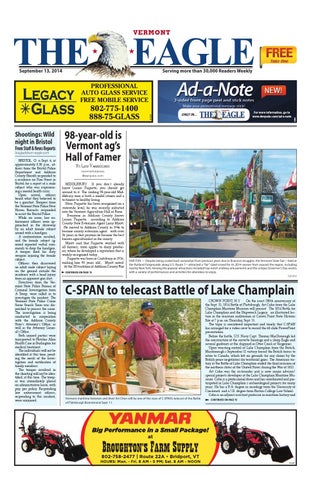 98-year-old is Vermont ag’s Hall of Famer By Lou Varricchio newmarketpress @denpubs.com MIddlEBurY Ñ If you donÕ t already know lucien Paquette, you should get around to it. the smiling 98-year-old Middlebury man is both a model citizen and a testiment to healthy living. now, Paquette has been recognized on a statewide level; he was recently inducted into the Vermont agriculture Hall of Fame. Ò Everyone in addison County knows lucien Paquette,Ó according to addison County State Extension agent larry Myott. Ò He moved to addison County in 1946 to become county extension agentÑ with over 36 years in that position he became the best known agriculturalist in the county.Ó Myott said that Paquette worked with all farmers, from apples to dairy producers where he developed a reputation that is widely recognized today. Ò Paquette was born in Craftsbury in 1916, making him 98 years old.,Ó Myott noted. Ò at the 2014 edition of addison County Fair CONTINUED ON PAGE 15