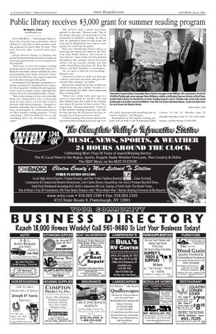 Public library receives $3,000 grant for summer reading program By Sarah L. Cronk sarah@denpubs.com PLATTSBURGH — Plattsburgh Public Library has attracted area elementary school children to take part in their summer reading program for more than 10 years. This year, however, they received some assistance. Library director Stanley A. Ransom contacted Hannaford Supermarkets in hopes of receiving grant money to cover expenses for the program. “Each year, we have the summer reading program and it costs about $3,000 to put on,” Ransom explained, which includes the costs of purchasing extra books and prize incentives for the children, who range in age from pre-schoolers through sixth grade. According to Tara Morgan, community relations specialist for Hannaford, the company often supports “children-based organizations” such as summer camps, although they usually do so by providing healthy snacks. “But, in this instance, it was very clear that these two organizations were in desperate need of some cash to even be able to move forward with these programs,” Morgan explained, referring also to Fletcher Free Library in Burlington, Vt., who needed money for their summer reading program. “It was something a little bit different for us, but something that was obviously a worthy cause.”