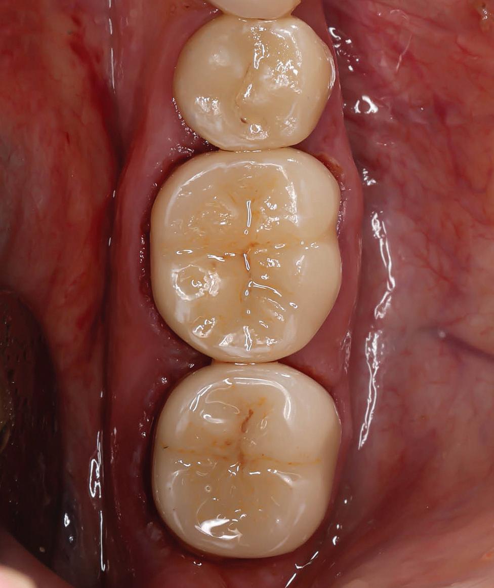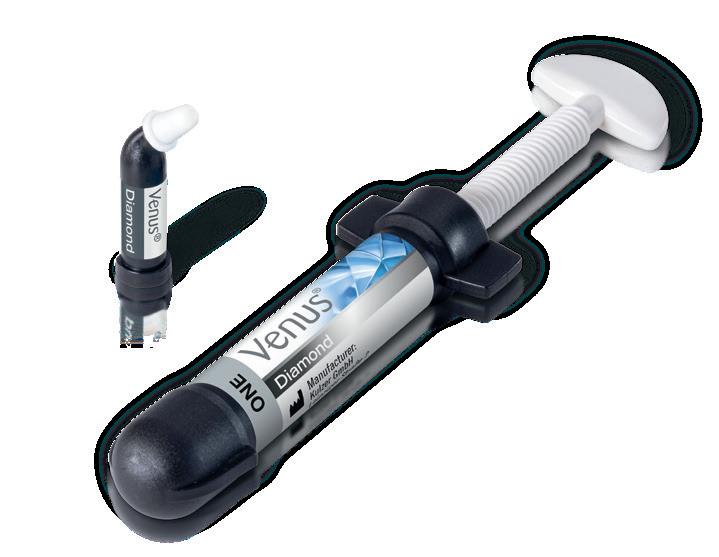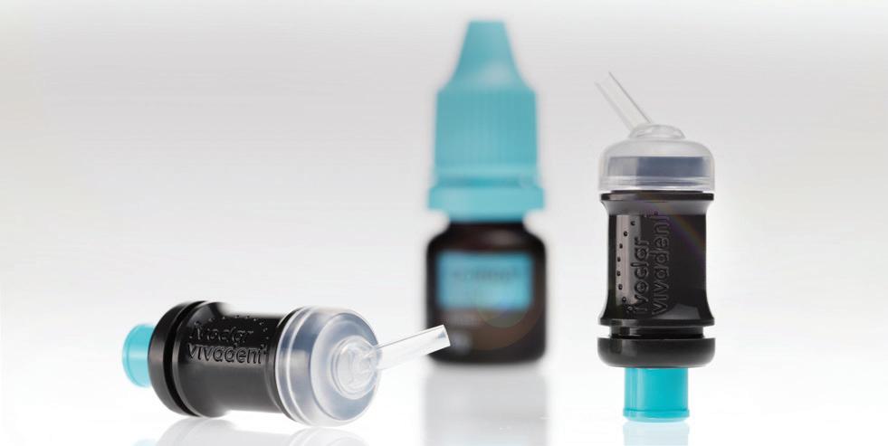 strength values of over 100 MPa in the load-bearing posterior region. Cention Forte blends in seamlessly with the natural tooth structure: The material is tooth-coloured and has a high translucency of around 11%. The matching selfetching, self-curing Cention Primer completes the system.