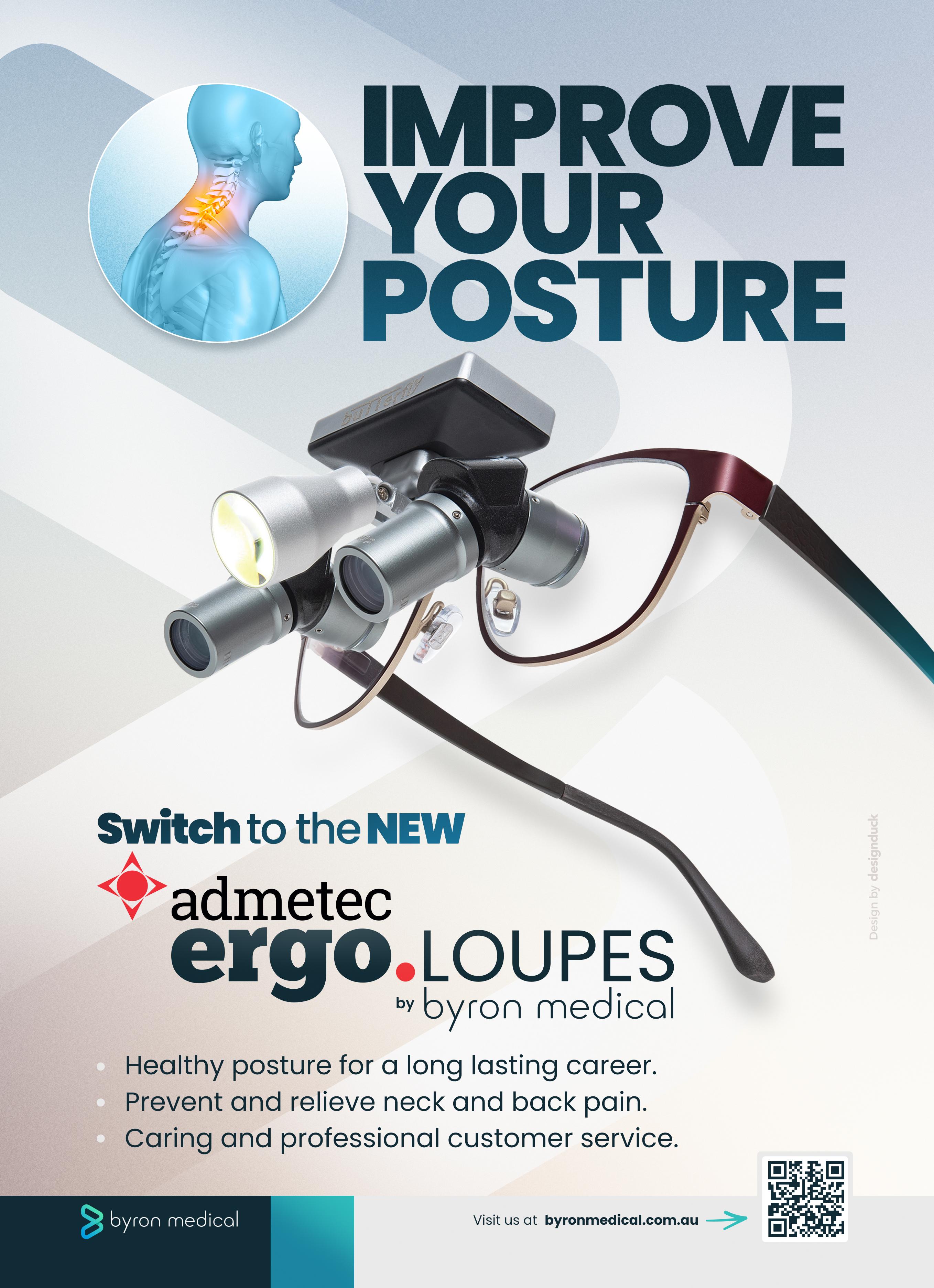 On the cover... Admetec ergo loupes foster healthy posture for a long lasting career, preventing and relieving neck and back pain.