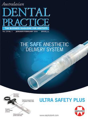Publisher & Editor: Joseph Allbeury Clinical Editor: Dr David Roessler Technology Editor: Prof. Laurence J. Walsh Infection Control Editor: Prof. Laurence J. Walsh Senior Contributing Editor: Dr Christopher CK Ho Columnists: Dr Georges Fast, Dr Jesse Green, Garry Pammer, Phillip Win, Dr David Moffet, Graham Middleton, Simon Palmer, Julie Parker, Jayne Bandy, Angus Pryor Design & Production: Jasper Communications Australasian Dental Practice™ ISSN 1445-5269 is printed in Australia and published six times per year by Main Street Publishing Pty Limited ABN 74 065 490 655 PO Box 586, Cammeray NSW 2062 Tel: (02) 9929-1900 Fax: (02) 9929-1999 Email: info@dentist.com.au © 2022 All rights reserved. The contents of this magazine are copyright and must not be reproduced without the written permission of the publisher. Permission to reprint may be obtained upon application. Correspondence and manuscripts for publication are welcome. Although all care is taken, the editor and publisher will not accept responsibility for the opinions expressed by contributors to this magazine, or for loss or damage to material submitted for publication Subscriptions: Australia and NZ: A$99.00 per year includes OralHygiene™ and eLABORATE™ magazines; Overseas Airmail: A$220.00 per year.