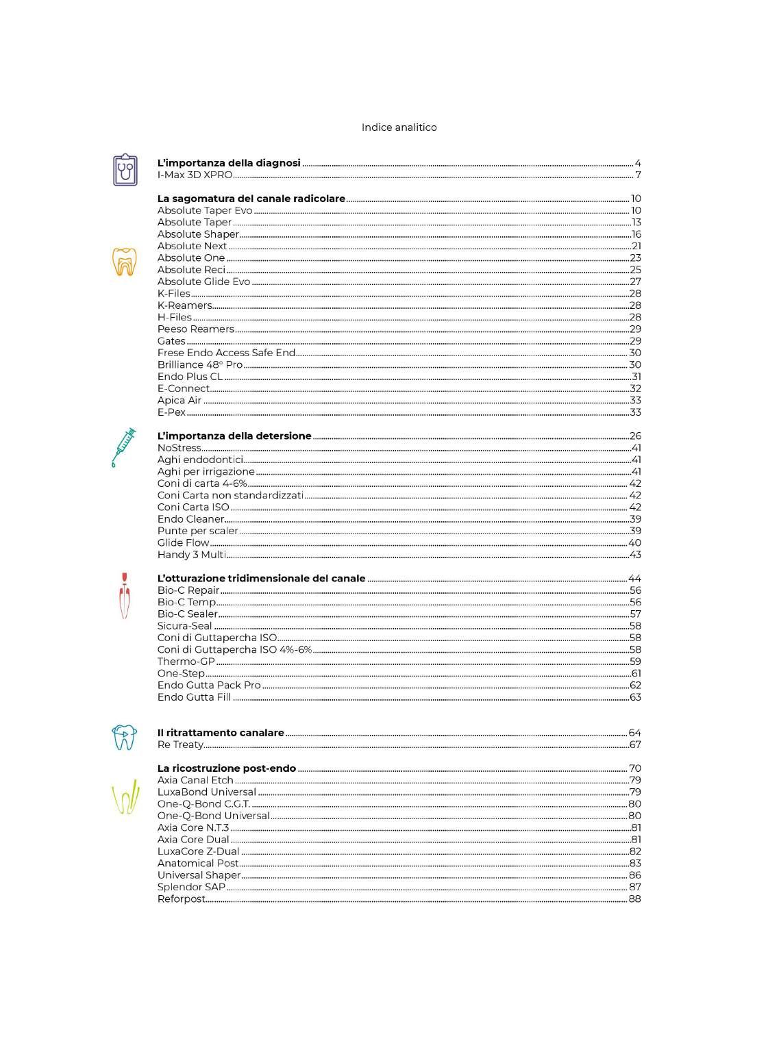 ∙ i canali radicolari, con un’identificazione accurata della reale morfologia canalare e l’eventuale presenza di perforazioni, stripping e gradini (in caso di canali già trattati).