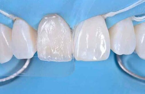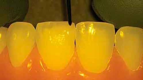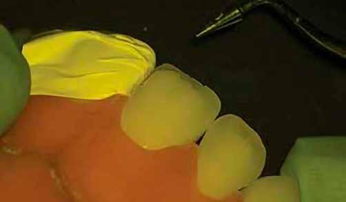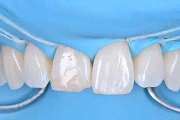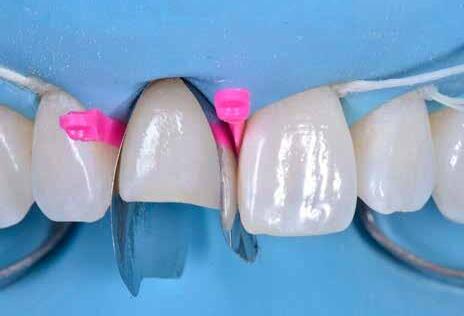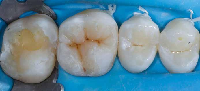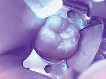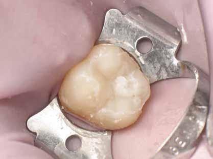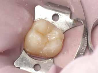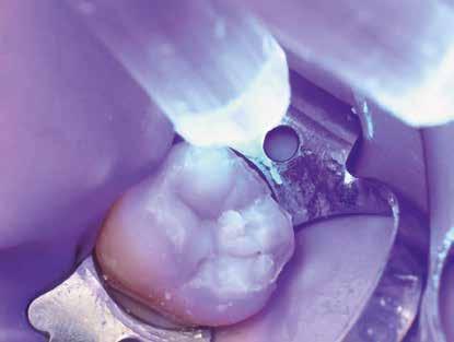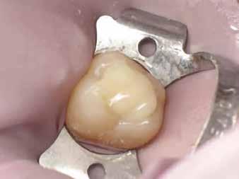A Palodent V3 matricarendszer felhelyezését követően a zománc 10 másodperces szelektív savazása, majd lemosása és leszárítása után történt a kavítás bondozása Prime & Bond Universallal.