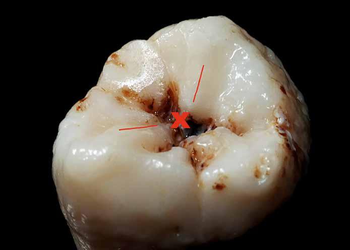 A szerző tapasztalata szerint jól használható támpont, ha gondolatban egy egyenest húzunk a mesio-bukkális csücsök csúcsa és a disto-bukkális csücsök csúcsa között, majd ezt merőlegesen elfelezzük – ez a vonal legtöbbször jól megfelel a középső bukkális barázda helyzetének (5. a és 5. b ábra)