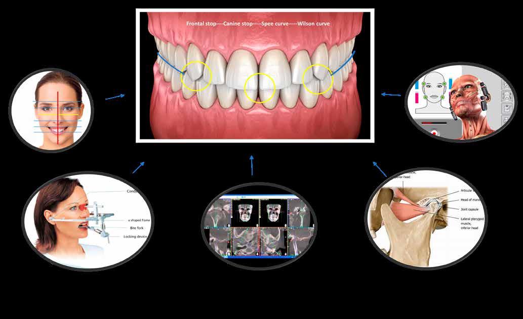 Az egyes csücskök háromdimenzóban végzett, funkcionális mozgáspályáinak összességét nevezzük okkluzális iránytűnek (2. ábra). Az okkluzális iránytű minden csücsök esetében egyedi (a rajta lévő bemélyedések és kiemelkedések szempontjából), és azt a csücsöknek a mandibula condylusának forgásközéppontjához viszonyított helyzete határozza meg.