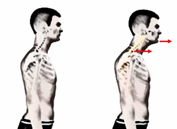 • A protrudált nagymetszők a fogérintkezést előretolt állapotban teszik lehetővé. Ez a mandibula előre, később felfelé irányuló rotációját vonja maga után, amit a fej előretolása követ az izomaktivitások miatt (18. kép). A fej előretolását a fej leszegése, majd a 6-7. nyakcsigolyák egymáson való elcsúszása követ.