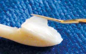 Ezután szerző a kompozitot tovább formálja, „lágyítja” az anatómiai részleteket, és illeszti azokat a kavitás széli zónáihoz, No. 1 ecsettel (GC Corp) és modellező rezin használatával. A modellező rezin kis mennyiségben használt folyékony rezin, amely lehetővé teszi az ecsettel történő adaptálást. Számos gyártó kínál ilyen terméket, például Kulzer (Signum Liquid), Bisco (Modelling Resin) és Cosmedent (Brush and Sculpt).