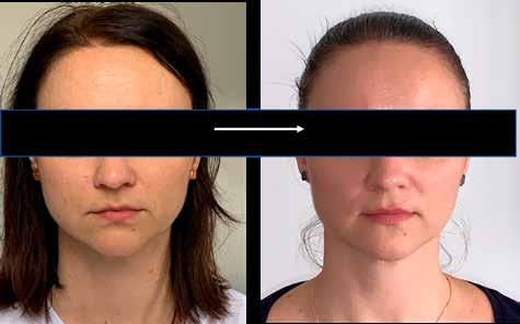 • Amikor az okklúziós billenése is bekövetkezik a hosszú távú aszimmetrikus erők miatt, akkor ez az arcon az arckontúr változásával is jár. Leginkább az állkapocs-pozíció-aszimmetriája figyelhető meg, valamint megváltozik az arckontúr: a billenés oldalán rövidebb és egyenesebb lesz (17. kép).