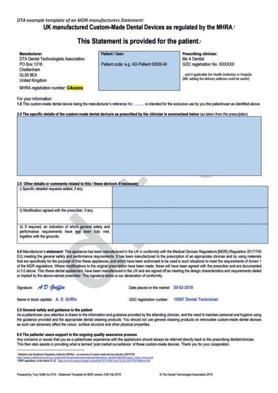 Please return this form to: The Dental Technologists Association, PO Box 1318, Cheltenham, GL50 9EA www.dta-uk.org