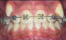 II, la literatura respalda el uso de resortes abiertos combinados con arcos de nivelación con curva de Spee invertida; esta combinación permite reducir la sobremordida mientras se genera espacio para los caninos (Tuverson, 1980).19 En nuestro paciente se corrigió mediante el uso de brackets convencionales con resortes durante el proceso de alineación y nivelación, logrando su corrección.