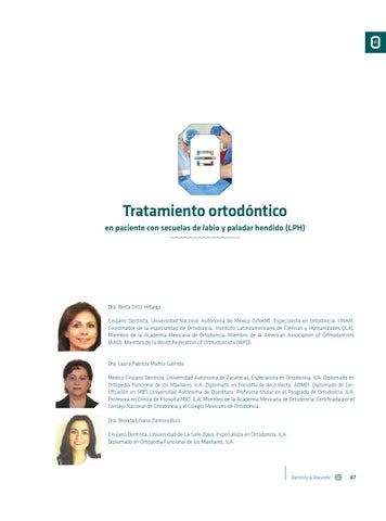 Dra. Berta Ortiz Hidalgo Cirujano Dentista, Universidad Nacional Autónoma de México (UNAM). Especialista en Ortodoncia, UNAM. Coordinador de la especialidad de Ortodoncia, Instituto Latinoamericano de Ciencias y Humanidades (ILA). Miembro de la Academia Mexicana de Ortodoncia. Miembro de la American Association of Orthodontists (AAO). Miembro de la World Federation of Orthodontists (WFO).