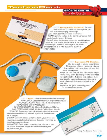 Xyon. El anestésico convencional en odontología. COMPOSICIÓN. Lidocaína hidrocloruro + epinefrina 1 :80,000 INICIO DE LA ACCIÓN. Actúa a los 2-3’, tras su inyección. DURACIÓN DEL EFECTO ANESTÉSICO: INFILTRACIÓN PULPAR: 55 - 65 min. Tejido blando: 180 min. BLOQUEO TRONCULAR PULPAR: 80 - 90 min. Tejido blando: 180 min. SEGURIDAD. Proporciona una rápida instauración de la anestesia y es tolerado a nivel tisular, sin irritar ni provocar sensibilizaciones ni alergias. EFICACIA. Concentración de epinefrina óptima, que ofrece una isquemia adecuada (efecto anestésico duradero) y minimiza las complicaciones sistemáticas. INDICACIONES. Para intervenciones de rutina, tales como: pulpectomias, exodoncias simples y tratamientos quirúrgicos de periodontitis, etc. Fotografía: Editorial Renascence