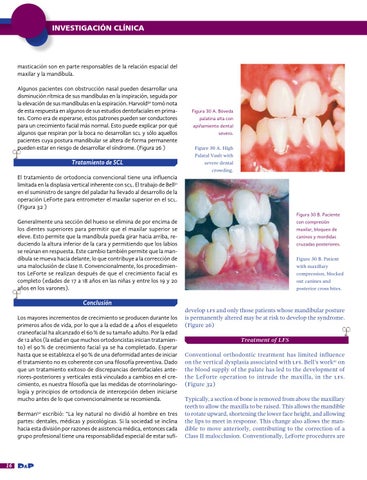 El tratamiento de ortodoncia convencional tiene una influencia limitada en la displasia vertical inherente con scl. El trabajo de Bell51 en el suministro de sangre del paladar ha llevado al desarrollo de la operación LeForte para entrometer el maxilar superior en el scl. (Figura 32 ) Figura 30 B. Paciente con compresión maxilar, bloqueo de caninos y mordidas cruzadas posteriores.