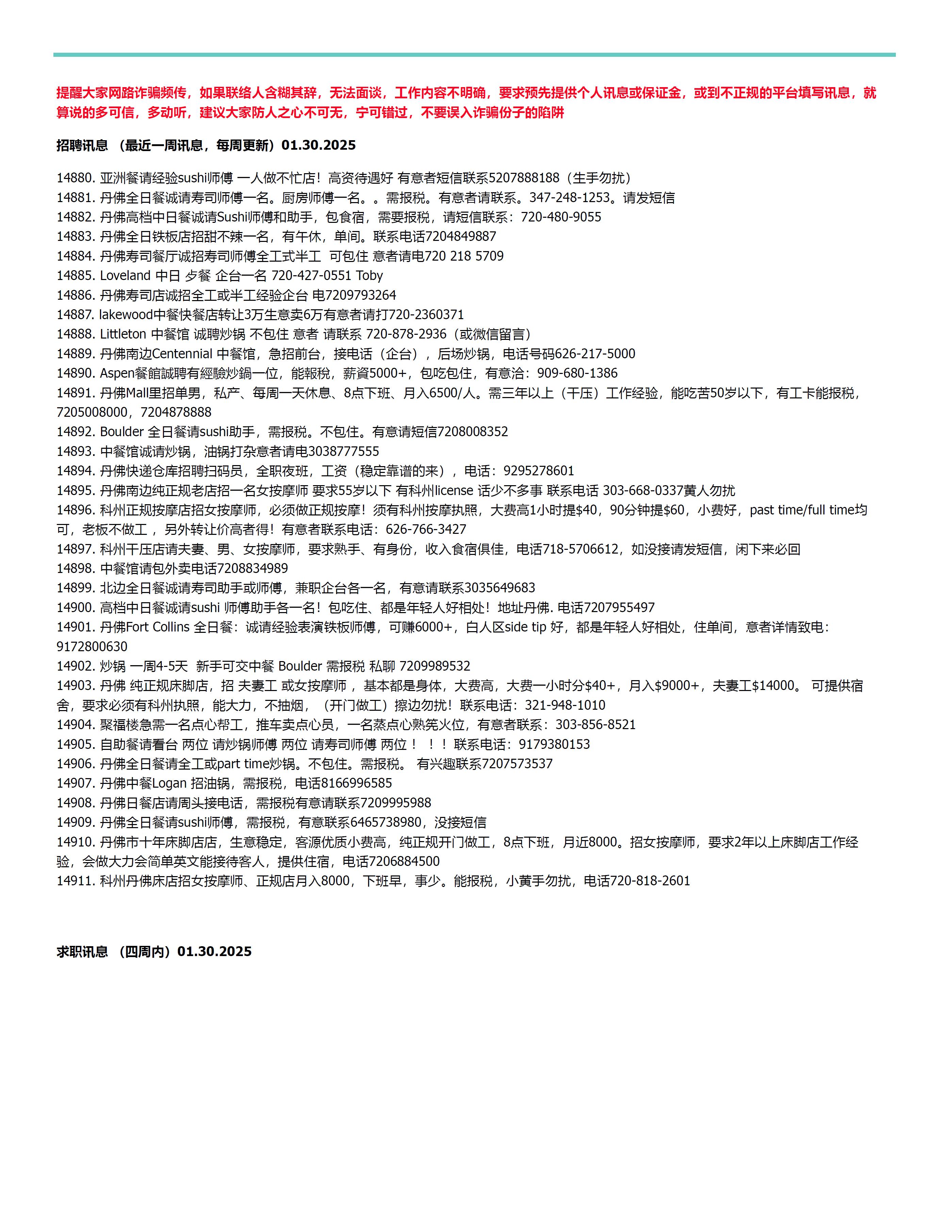 科州华人分类广告2026年1月30日版