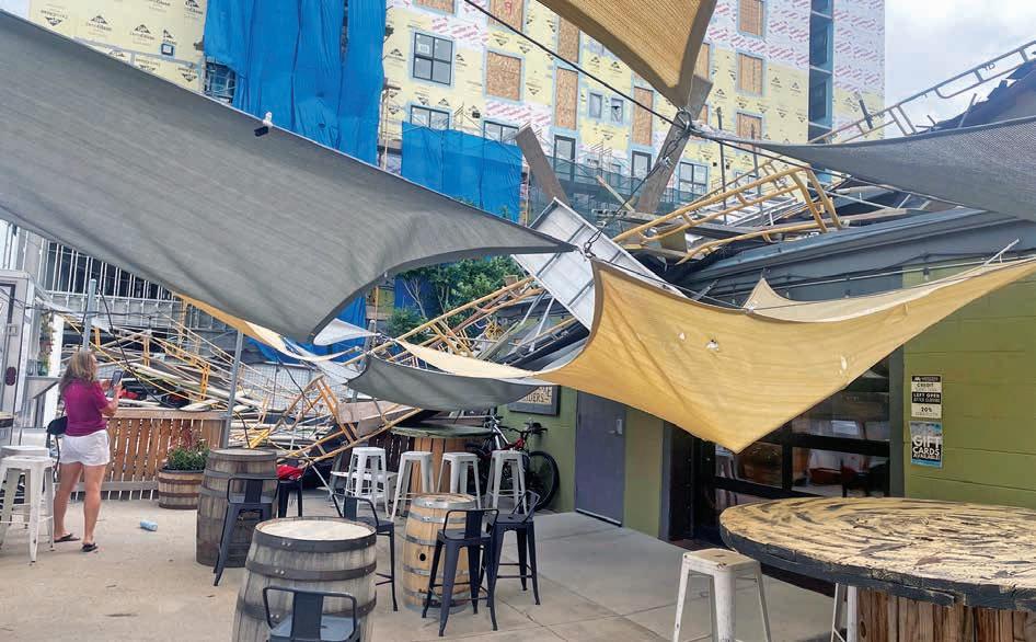 “We had all of our garage doors open, so we went to close them all,” she said. “One of our bartenders … as he was turning the misters off, the wind really picked up, and he decided to get everyone on the patio inside because it was getting a little intense. Maybe 3 to 5 seconds later, it just came crashing down. It’s incredible no one was hurt.”