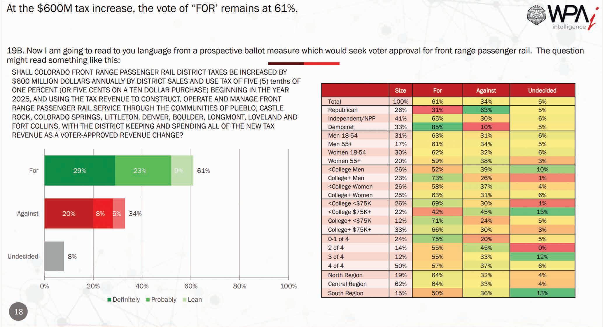 board by Gov. Jared Polis, called a “go big or go home” approach. They want more information about how the service plan could be enhanced with the additional funding from the full 0.5% sales tax hike, such as by extending service to Cheyenne to the north, or to Trinidad or New Mexico to the south, or by building more double-tracked segments along the corridor to enable faster and more frequent service.