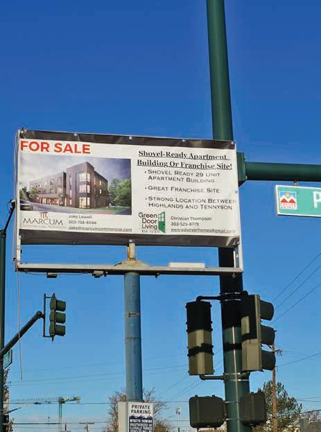 The most visible of the projects is a 40unit apartment building under construction at West 38th and Tennyson, where Country Gentleman’s Liquor store and Tennyson’s Tap operated until the COVID-19 pandemic. Most of the market-rate rental units will be one-bedroom or two-bedroom, with a few studios. Square footage will range from 550 to 1,000.