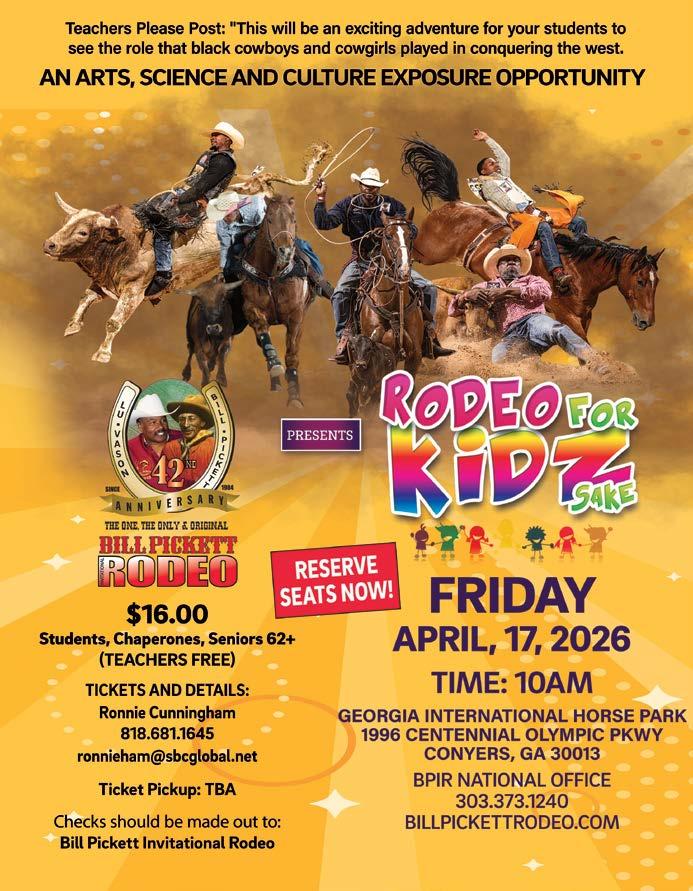 A Certified Check, Money Order or Cash is accepted. We also accept school checks. All payments must be made payable to “Bill Pickett Invitational Rodeo”. Your payment is due upon arrival to the Georgia International Horse Park on Friday, April 17, 2026. We understand that some school payments may have to process via internal payment networks, and there can be a delay. You only pay for students; school staff (2 per group of 20) are admitted free. All we require right now is your reservations so that we know the number of students & staff in attendance and can reserve your seats.