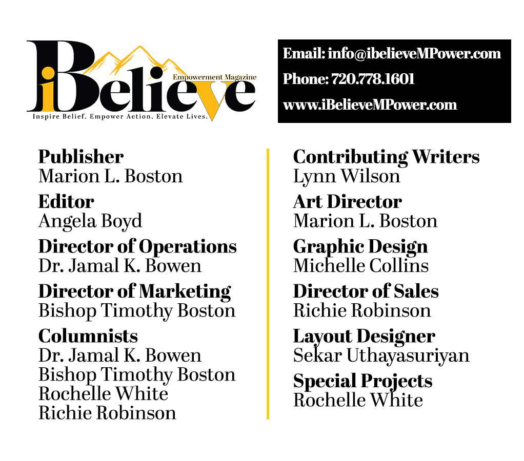 Marion Boston, Publisher of iBelieve Empowerment Magazine; info@ibelievempower.com