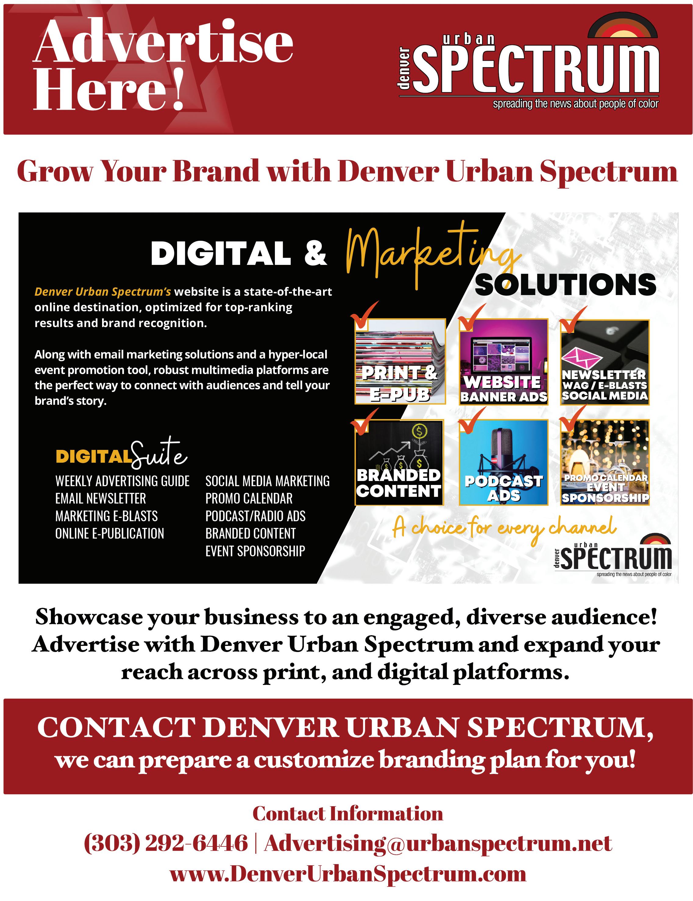 Denver Urban Spectrum is a monthly publication dedicated to spreading the news about people of color. Contents of Denver Urban Spectrum are copyright 2026 by Bizzy Bee Enterprise. No portion may be reproduced without written permission of the publisher.