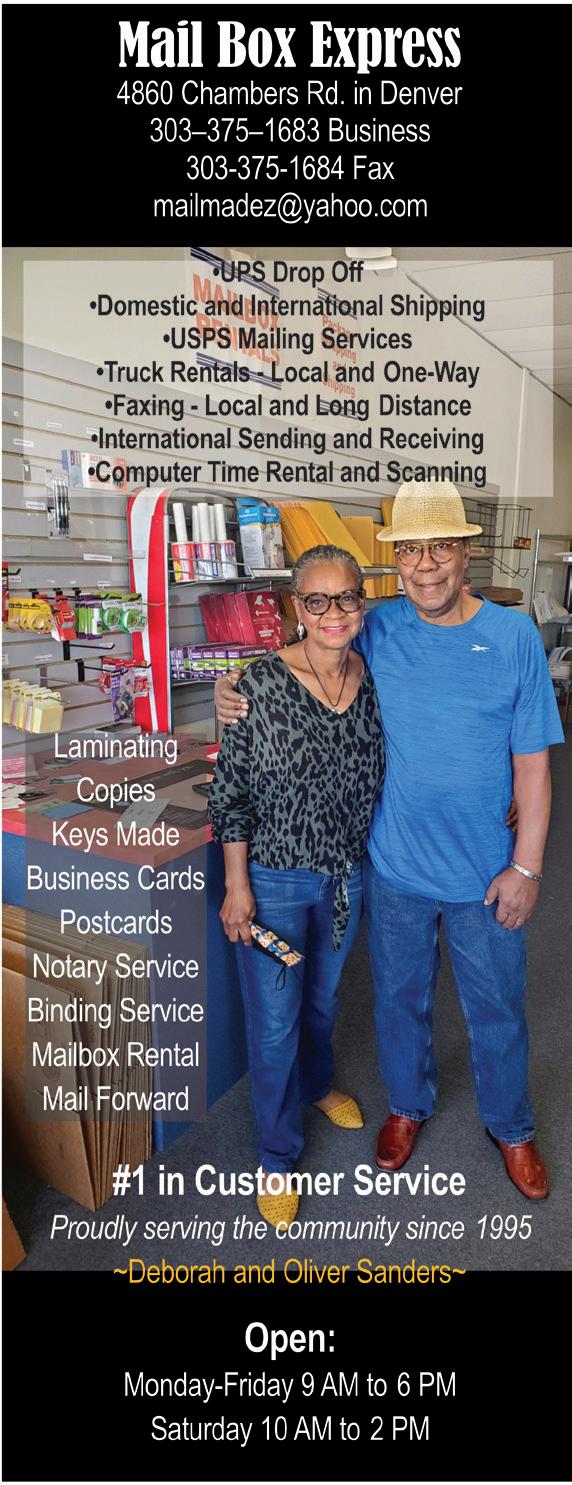 For advertising, subscriptions, or other information, call 303-292-6446, email publisher@urbanspectrum or visit the Website at www. denverurbanspectrum.com.