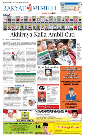 Akhirnya Kalla Ambil Cuti ■ Erman Tolak Kampanye JAKARTA, BPOST - Tiga menteri resmi mengajukan cuti untuk kampanye. Tapi tidak bagi Menteri Tenaga Kerja dan Transmigrasi, Erman Suparno. Meski tercatat sebagai Bendahara DPP PKB, Erman menolak mengampanyekan partainya. “Saya nggak maju sebagai nyaleg, jadi nggak kampanye,” ujar Erman di Kantor Presiden, Jakarta, Jumat (6/3). Selain karena tidak menjadi caleg, Erman memilih tidak kampanye juga karena takut nanti bingung sendiri soal PKB mana yang akan dibelanya. Maklum saat ini PKB terbelah dalam dua kubu, Gus Dur dan Muhaimin Iskandar. “Iya. Daripada bingung lebih baik tidak,” jawab pria yang dikenal dekat dengan Muhaimin ini, seraya tertawa. Selain tiga menteri, ternyata Ketua Umum Partai Golkar yang juga Wakil Presiden Jusuf Kalla mengaku sudah mengajukan cuti untuk berkampanye. Namun, dia tidak merinci kapan cutinya dan di mana akan melakukan kampanye. “Itu rahasia, masa cuti diberi tahu, nantilah,” jawab Kalla saat didesak kapan dan di mana kampanyenya saat dia cuti, Jumat (6/3) di Istana Wapres. Menurut Kalla, cuti kampanye bagi pejabat negara sudah ada aturannya, dia tinggal mengikuti saja aturan