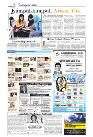 Kumpul-kumpul, Arisan Yuk! SULIT menabung, arisan bisa menjadi solusinya. Seperti yang dilakukan sobat Kampusiana di Uniska Muhammad Arsyad Al Banjary Banjarmasin. Kemarin, Kamis (5/5) adalah jadwal pengundian arisan kelompok yang dikoordinir Nawang. Usai mengikuti kuliah mereka berkumpul di salah satu ruangan kelas yang kosong. Pesertanya 20 mahasiswa. Memang tidak seluruhnya hadir, yang penting ada perwakilan. Kertas kecil yang di dalamnya tertera namanama peserta arisan yang telah digulung kecil dan rapi itu dimasukkan ke dalam botol bekas kosmetik. Botol pun dikocok untuk dijatuhkan