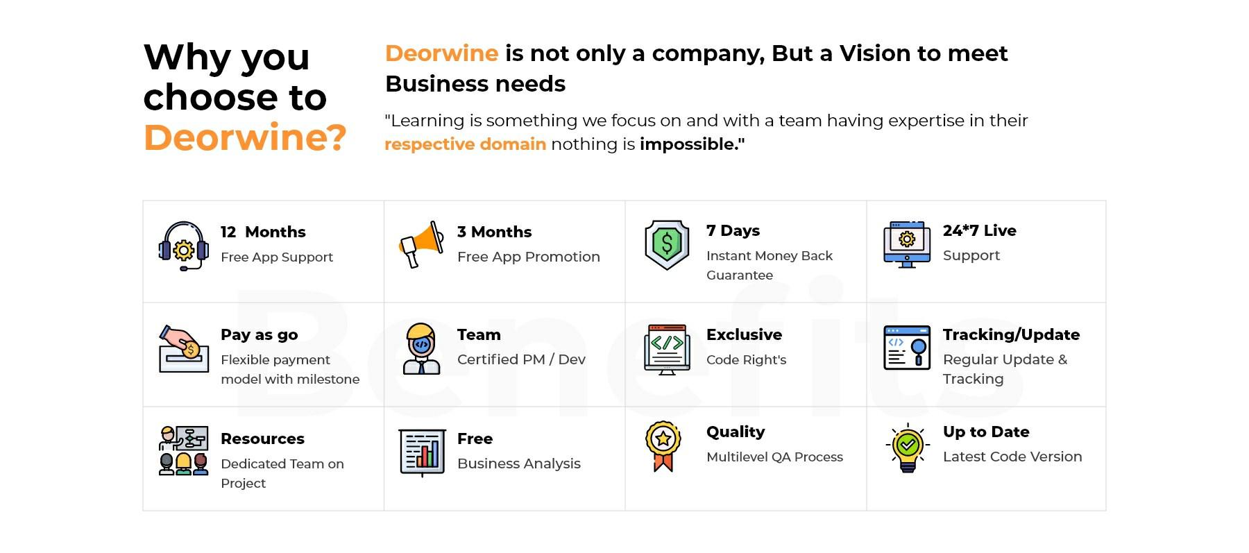 DeorwineInfotech believesyouprovideyou100%satisfactiontobuildthepowerfulplatformaccordingto youridea,andourteamservesthecompletesupporttounderstandandimplementand nallysupportfor that.