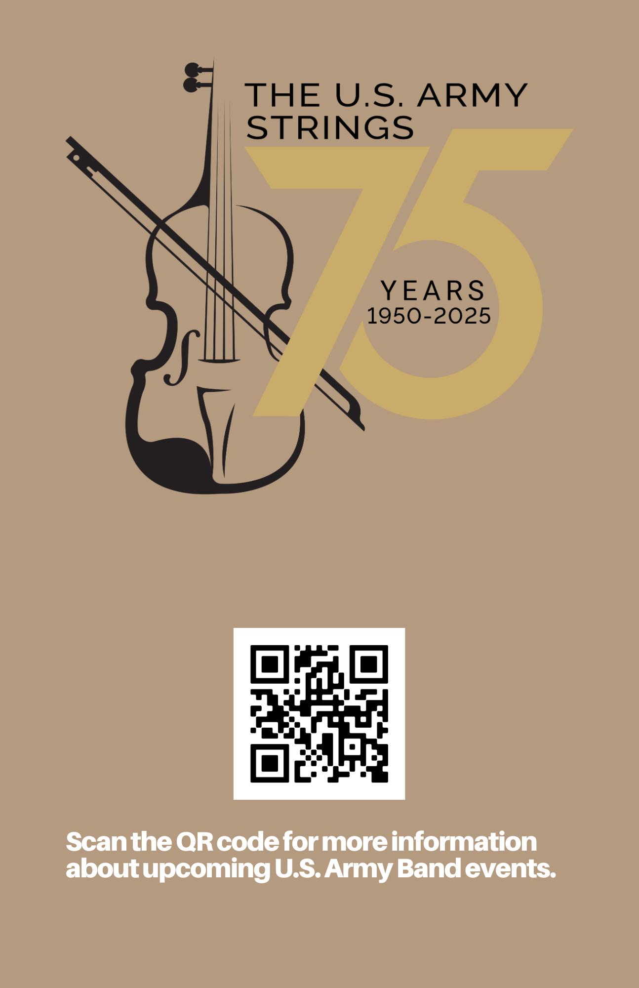 The U.S. Army Strings, a premier ensemble of the U.S. Armed Forces, provide a musical backdrop for many of the country’s most notable events. Their mission is to serve as musical ambassadors for high-level military and government events at home and abroad, as well as in concert for public audiences. The Soldiers who comprise this ensemble have been trained at the most prestigious music conservatories and universities in the country. This versatile ensemble performs as The U.S. Army Strolling Strings, in mixed chamber ensembles, and as The U.S. Army Orchestra.