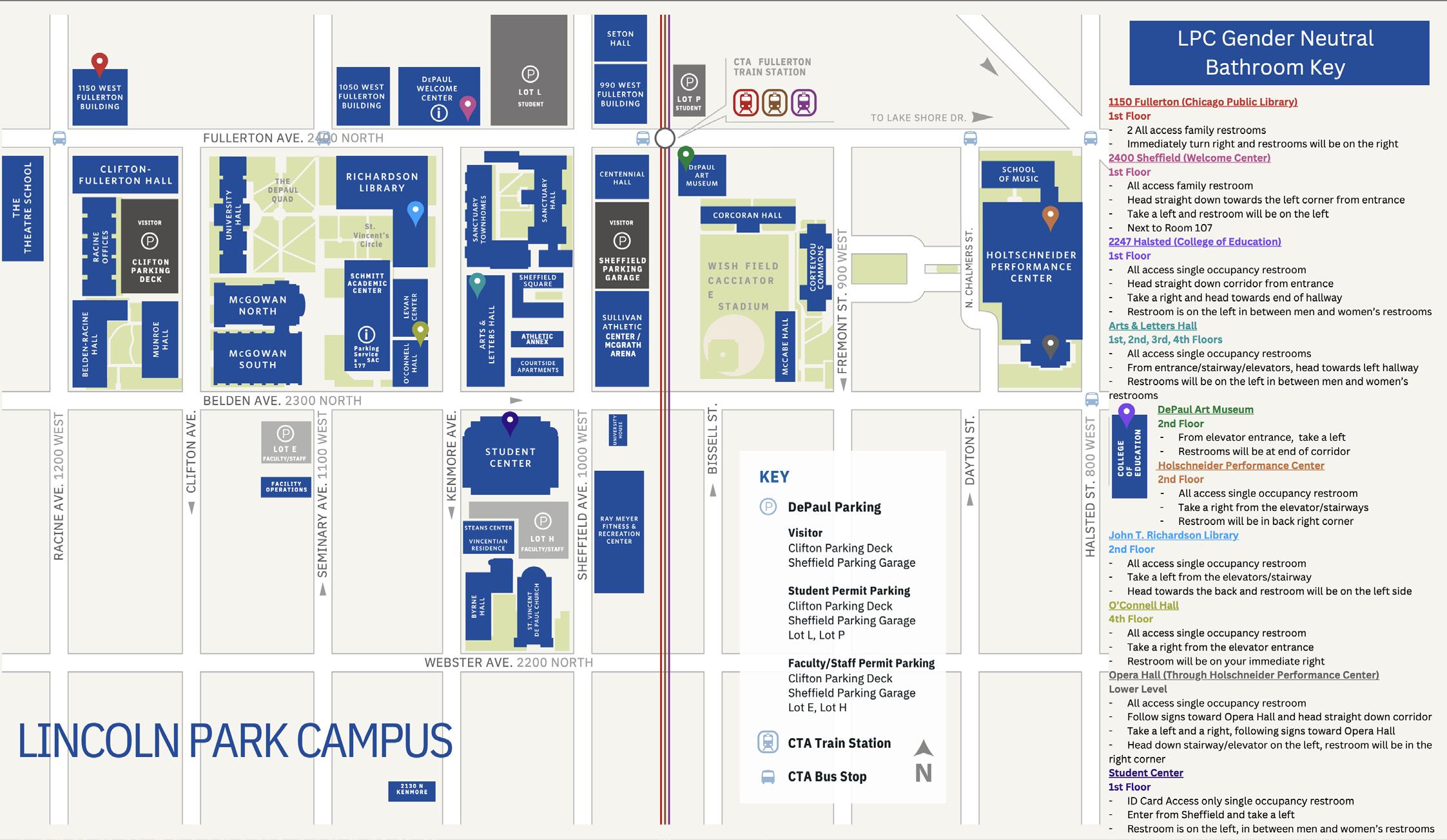 The list includes all single occupancy, gender-neutral or “family” restrooms in Lincoln Park and Loop. A published map on DePaul’s website will create accessi bility for students to know where the re strooms are located.