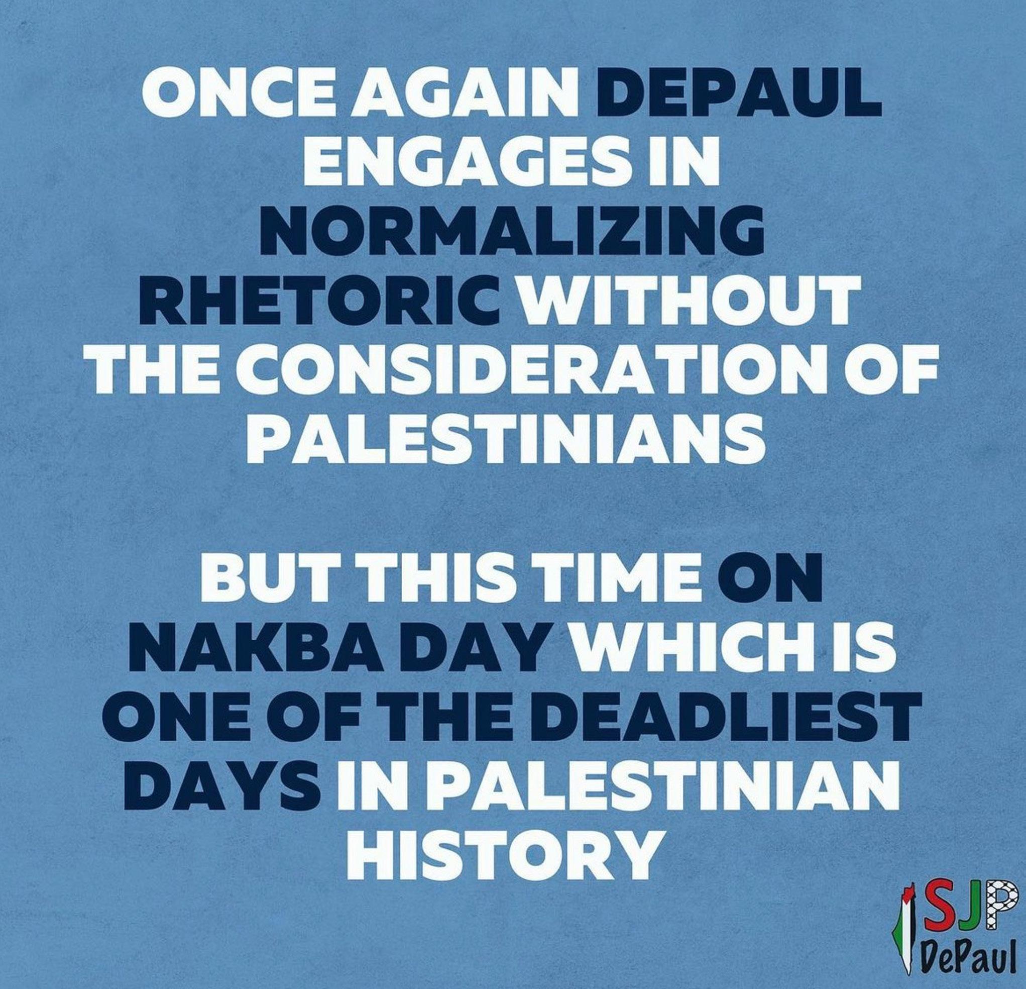 Torre said. “Not being considerate to the DePaul Palestinian community in organizing such an event is not right. Not providing a representative sample of voices on the issue is not right.”