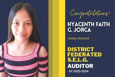 Jorca is the Supreme Elementary Learner Government (SELG) president for School Year 2023-2024. Her campaign, centered on transparency, accountability, and community engagement, resonated deeply with voters, securing her a decisive win in the recent election