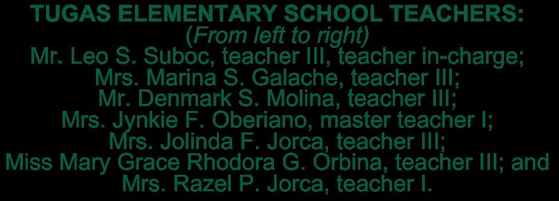 Mrs Razel Jorca, Mr Denmark Molina, Ms Mary Grace Rhodora Orbina, Mrs Jolinda Jorca, Mr Leo Suboc, Mrs Marina Galache, and Mrs Jynkie Fundal.