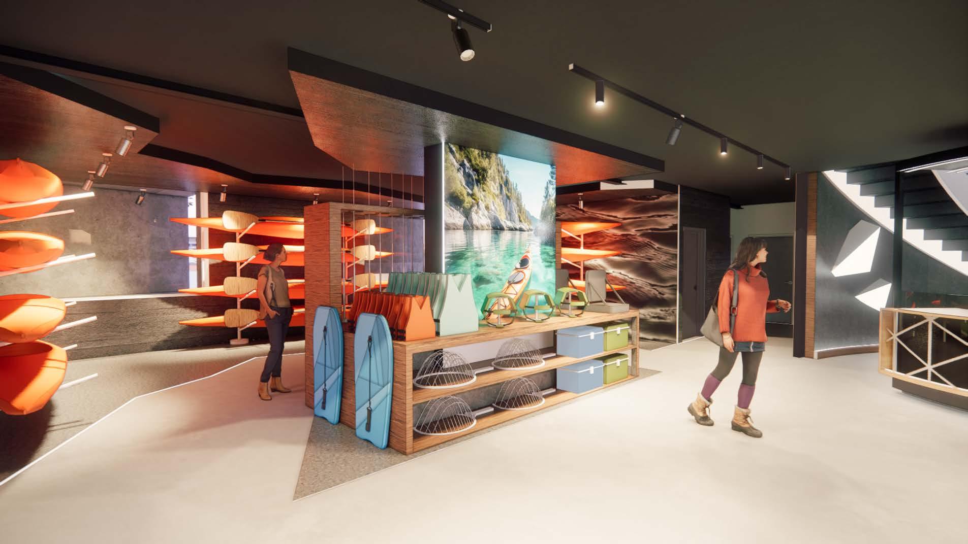 The concept centered around providing a space where visitors could rent outdoor equipment or purchase small related items, fostering a connection with nature and the local environment. This design incorporated flexible spaces for both the rental and retail aspects, with thoughtful spatial planning to create an inviting atmosphere for outdoor enthusiasts. The goal was to integrate the library into the community while promoting active outdoor engagement.