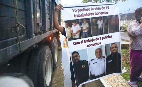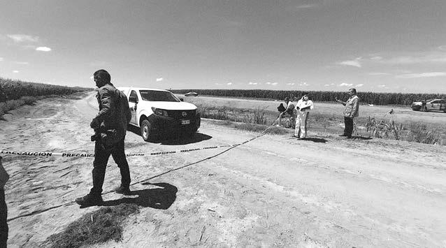 fuego, más de mil casquillos se recogieron en el lugar, que secuestran a 16 policías en Chiapas, y en el mismo estado el grupo armado Los Machetes tiene amenazada a toda la población; en el estado de México cuelgan de puente vehicular restos humanos y en Jalisco aparecen fosas clandestinas por todos lados y secuestran y matan a trabajadores de un call center