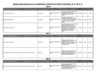 En ese año la empresa obtuvo cuatro contratos por parte del gobierno estatal por seis millones 781 mil 782 pesos. Tres de ellos fueron por invitación y el cuarto por adjudicación directa. Los cuatro contratos eran para pavimentación de calles con concreto hidráulico.