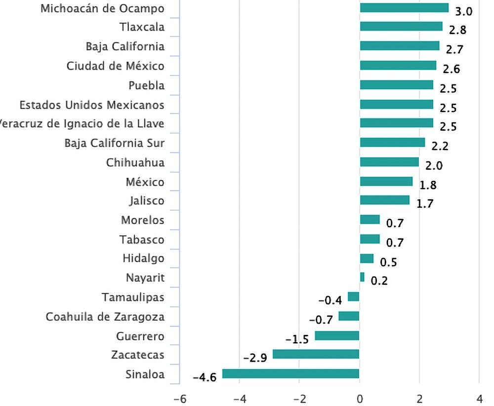 En esta lista de estados cuya economía es un desastre se incluyen, además, Zacatecas, Guerrero, Coahuila y Tamaulipas, todos en números negativos.
