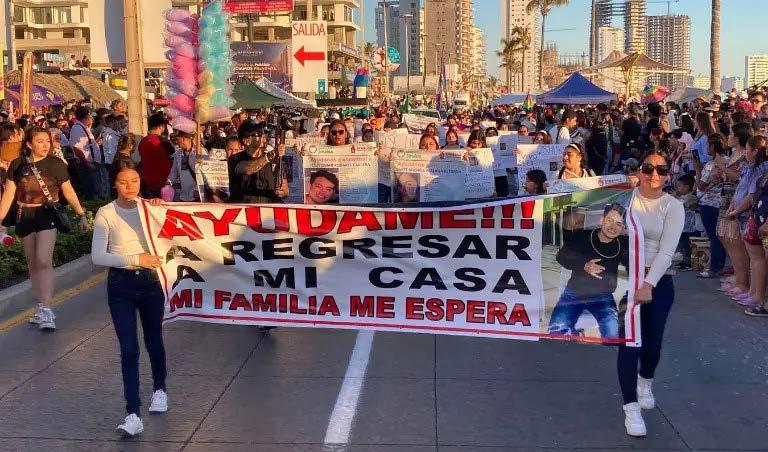 “Ayúdame a regresar a mi casa. Mi familia me espera”, se leía en una de las mantas que sostenían dos mujeres, acompañadas de niñas, mientras que los asistentes a las fiestas carnestolendas guardaron un poco de silencio ante el paso del pequeño contingente compungido por el dolor.